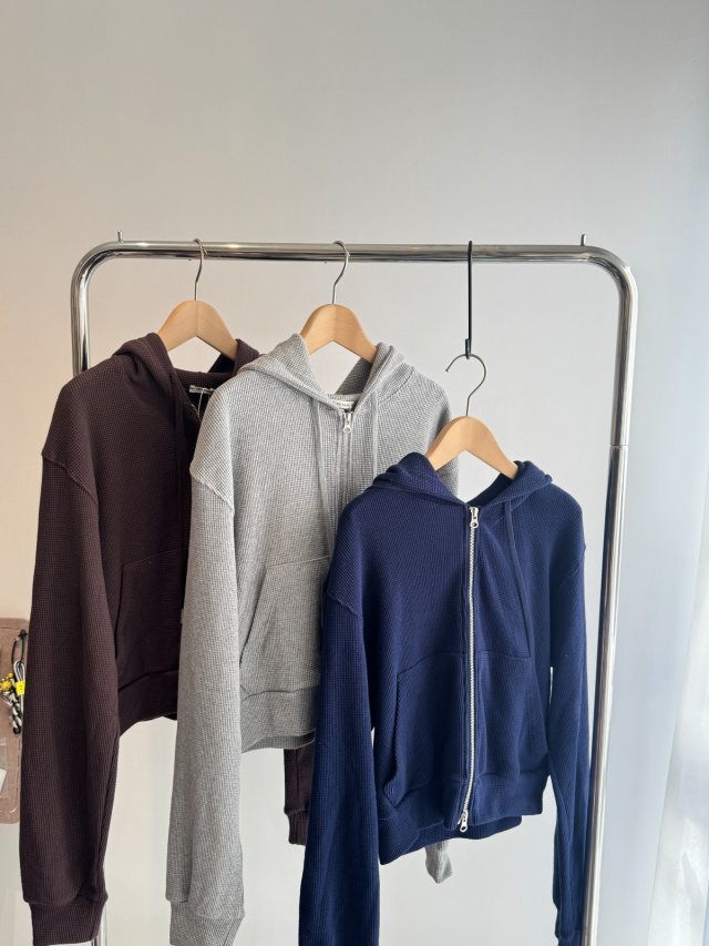 CD036 - Waffle 格休閒拉鏈帶帽外套