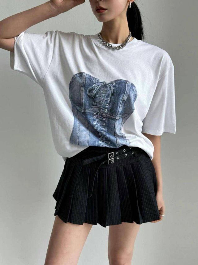 TP082 - 花邊slim cut圓領TEE