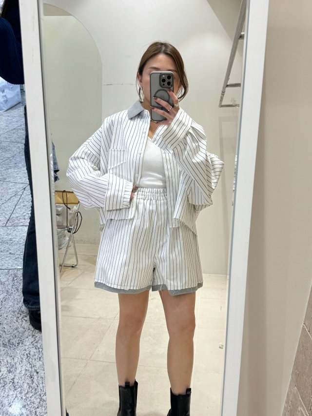 SU012 - 條子併色套裝 (外套+短褲)