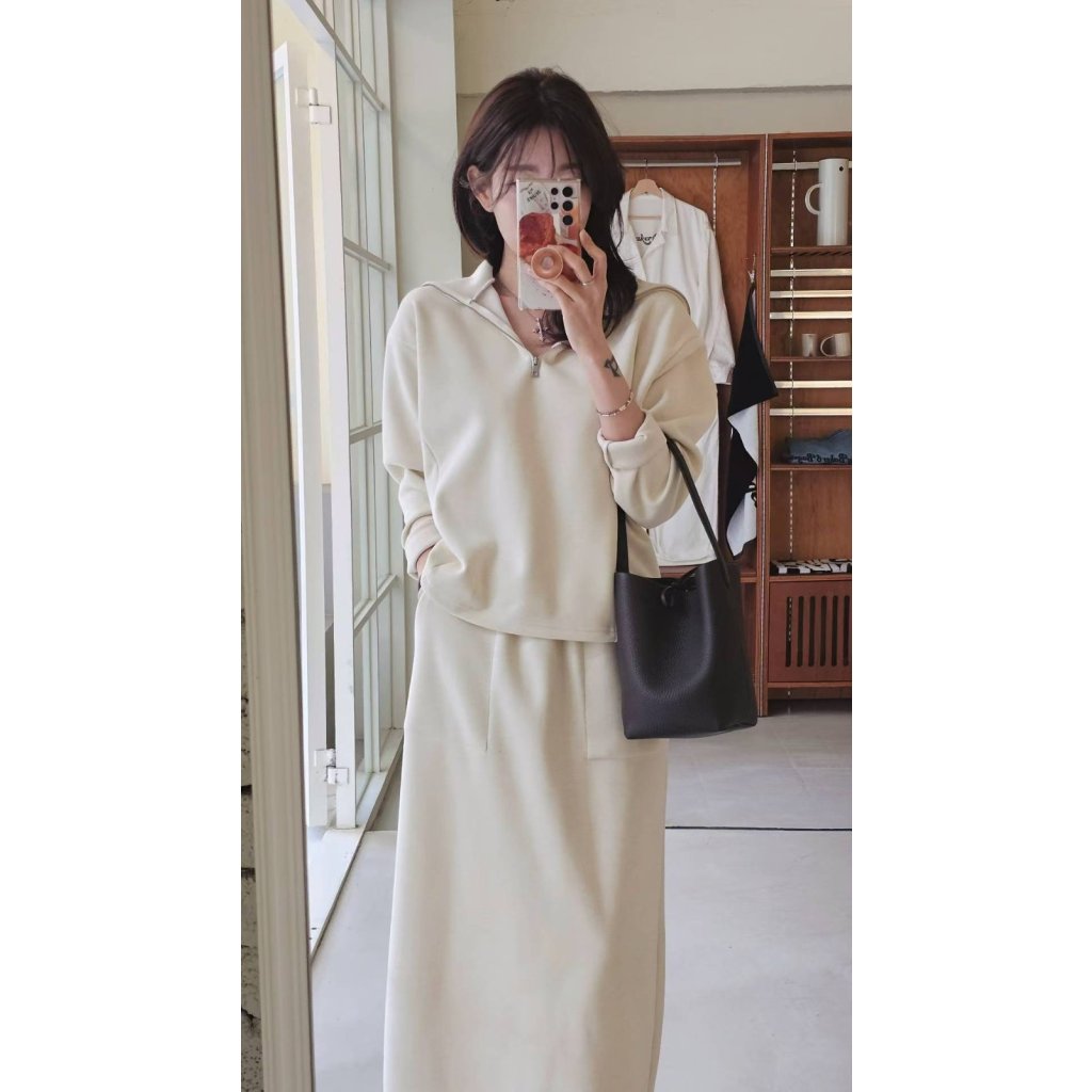 SK061 - 質感羅馬布混羊毛休閑長裙