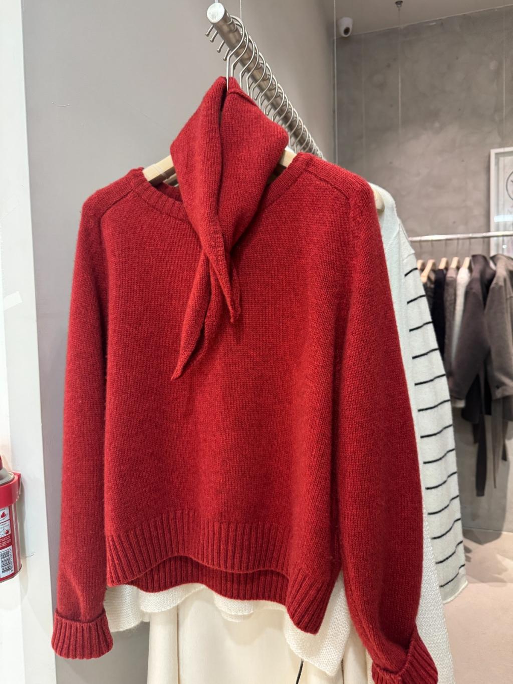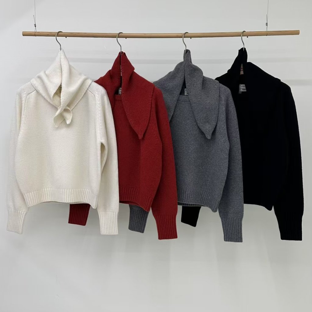 TP250 - 極簡法式連小領巾毛衣