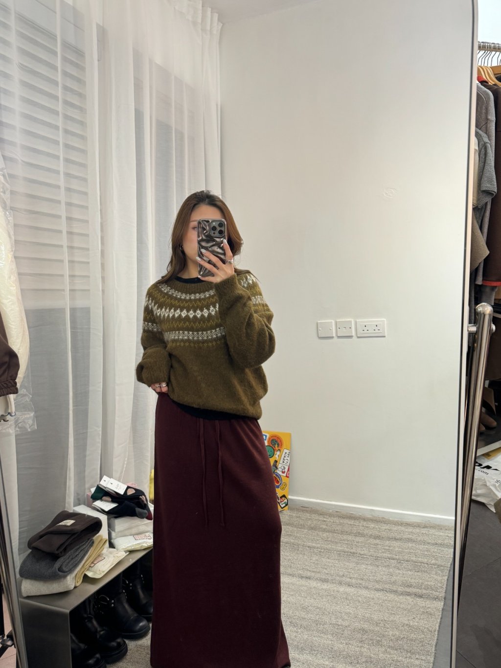 TP277 - 橄欖綠雪花圖案毛衣 (50% Racoon)