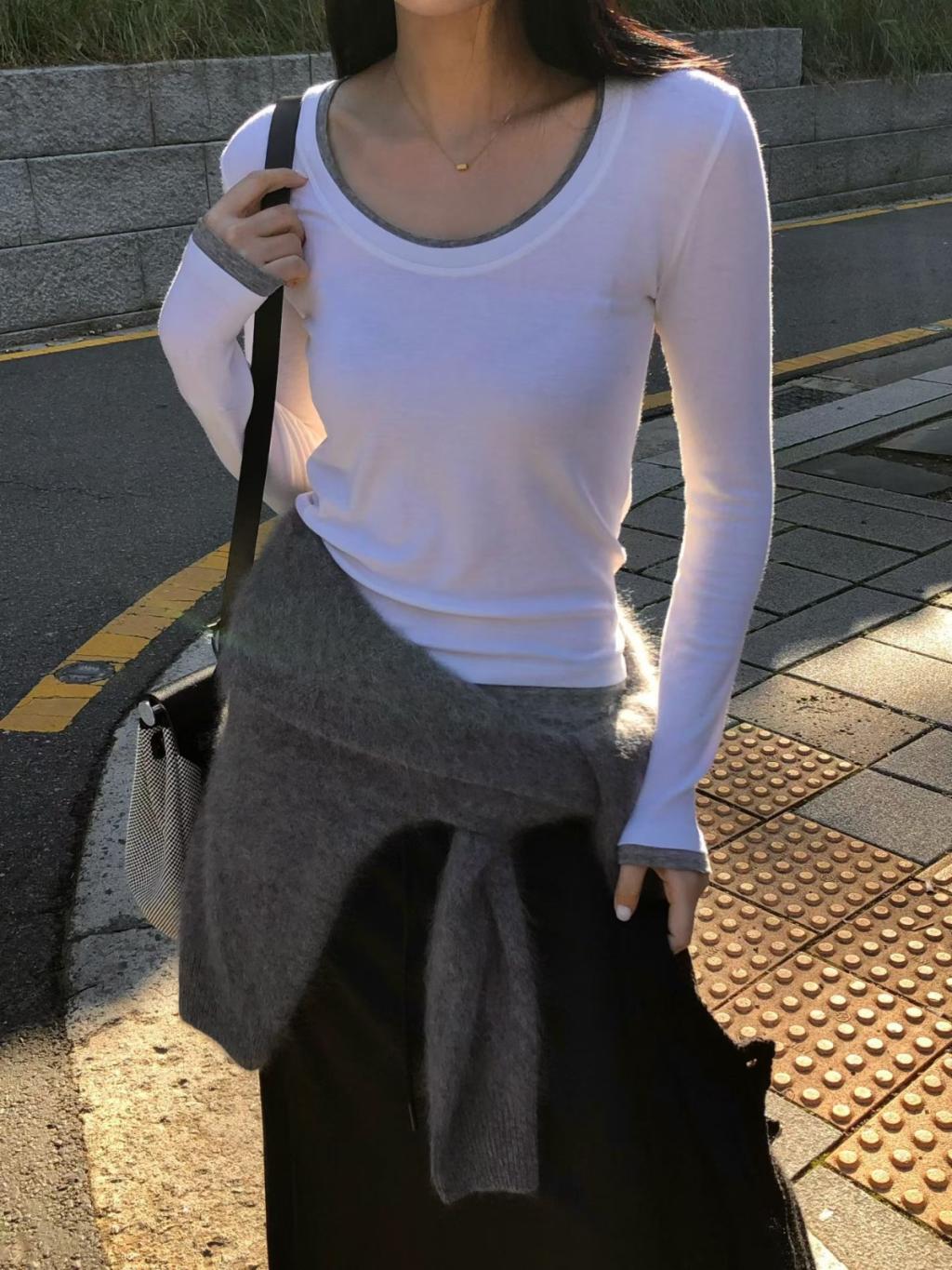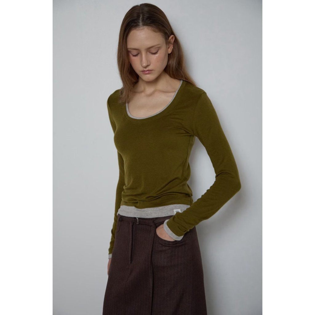 TS041 - 春季天絲拼色上衣