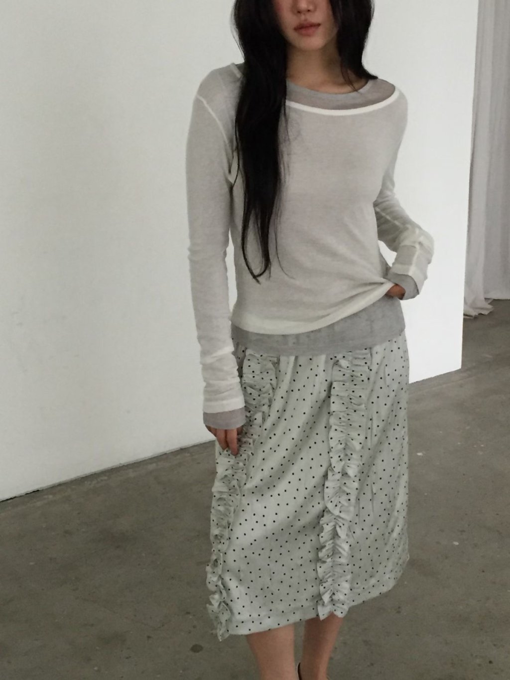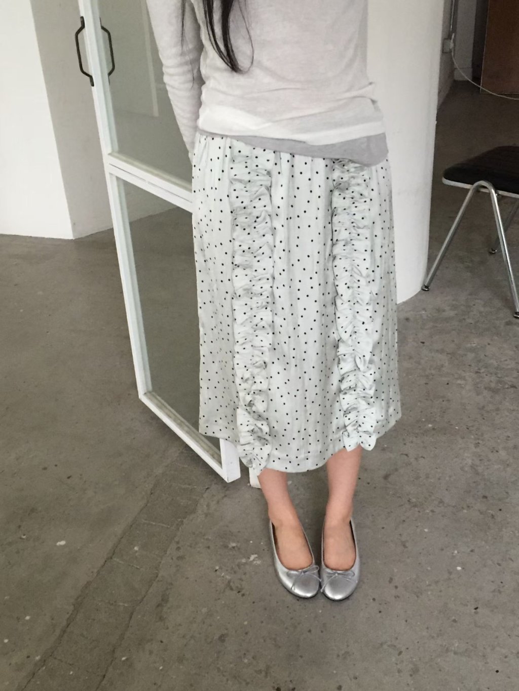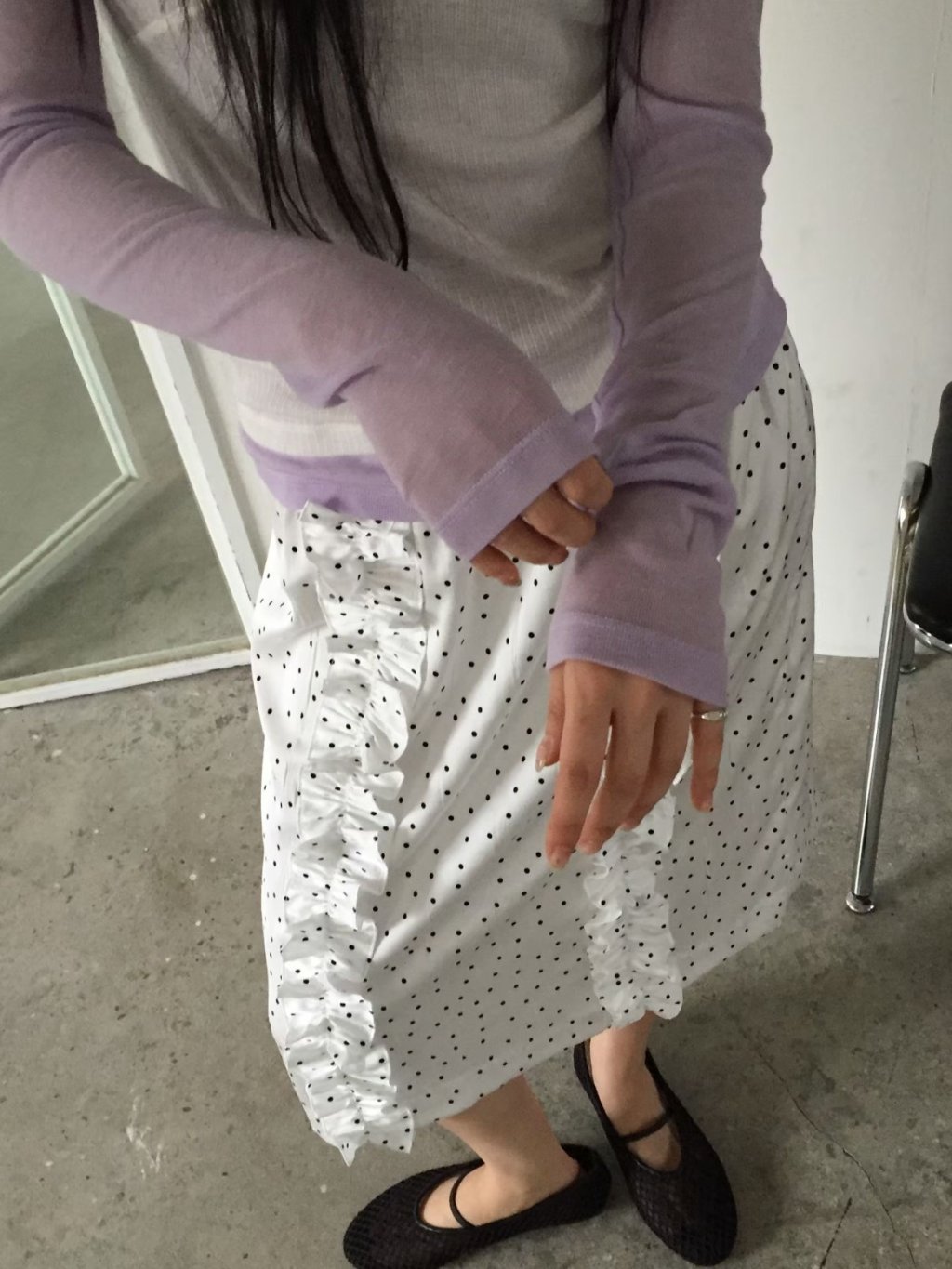 SK089 - 法式波點荷葉邊長裙