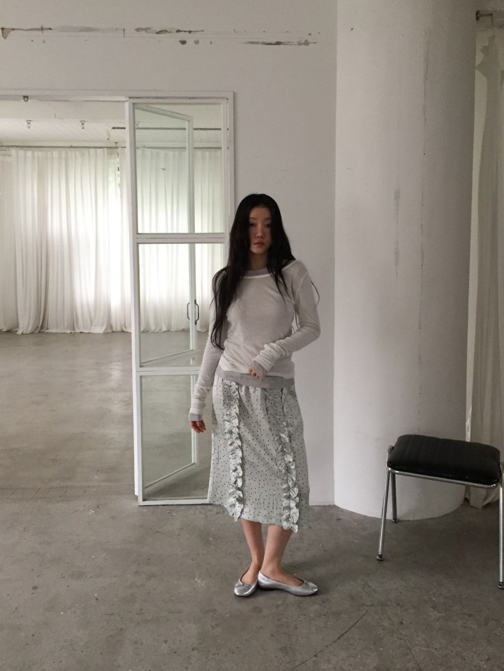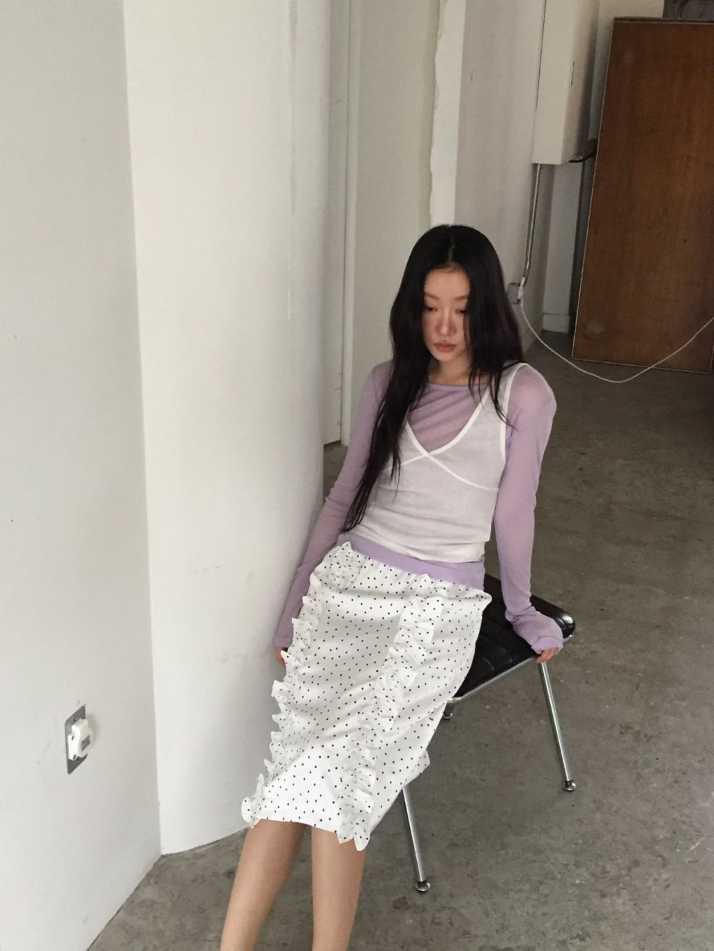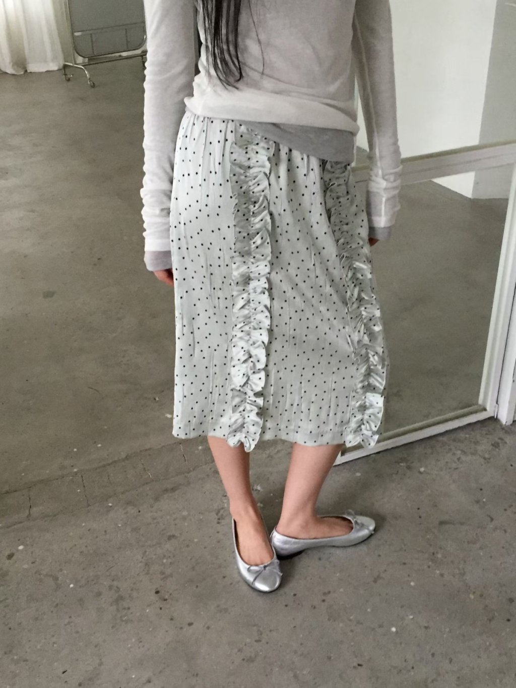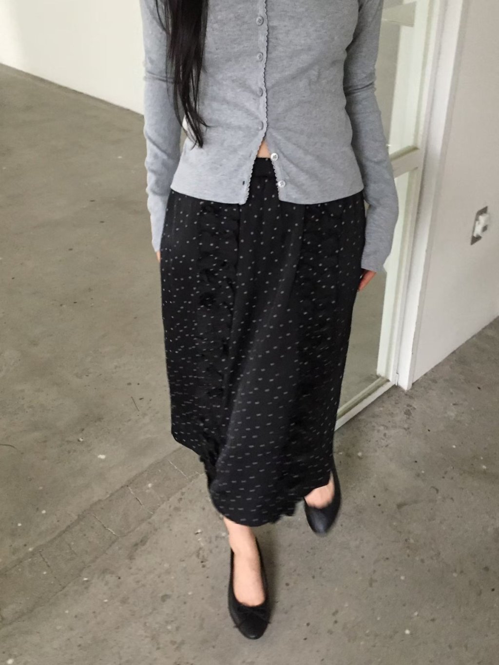 SK089 - 法式波點荷葉邊長裙