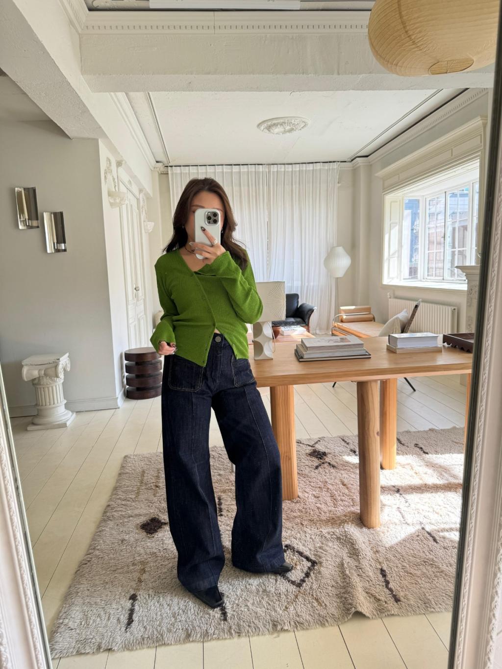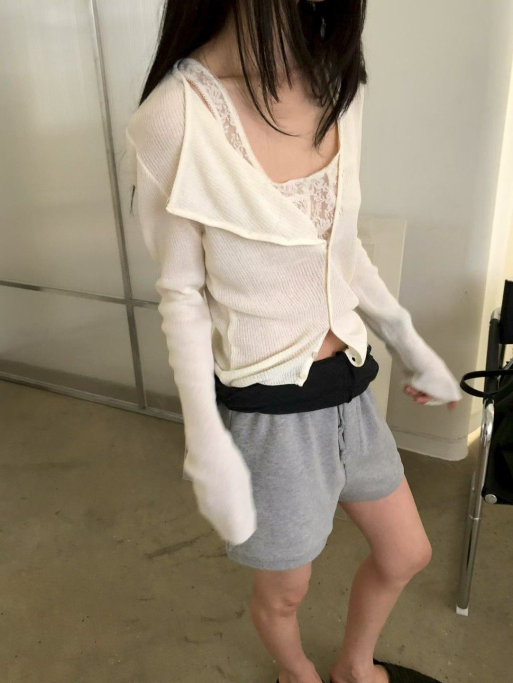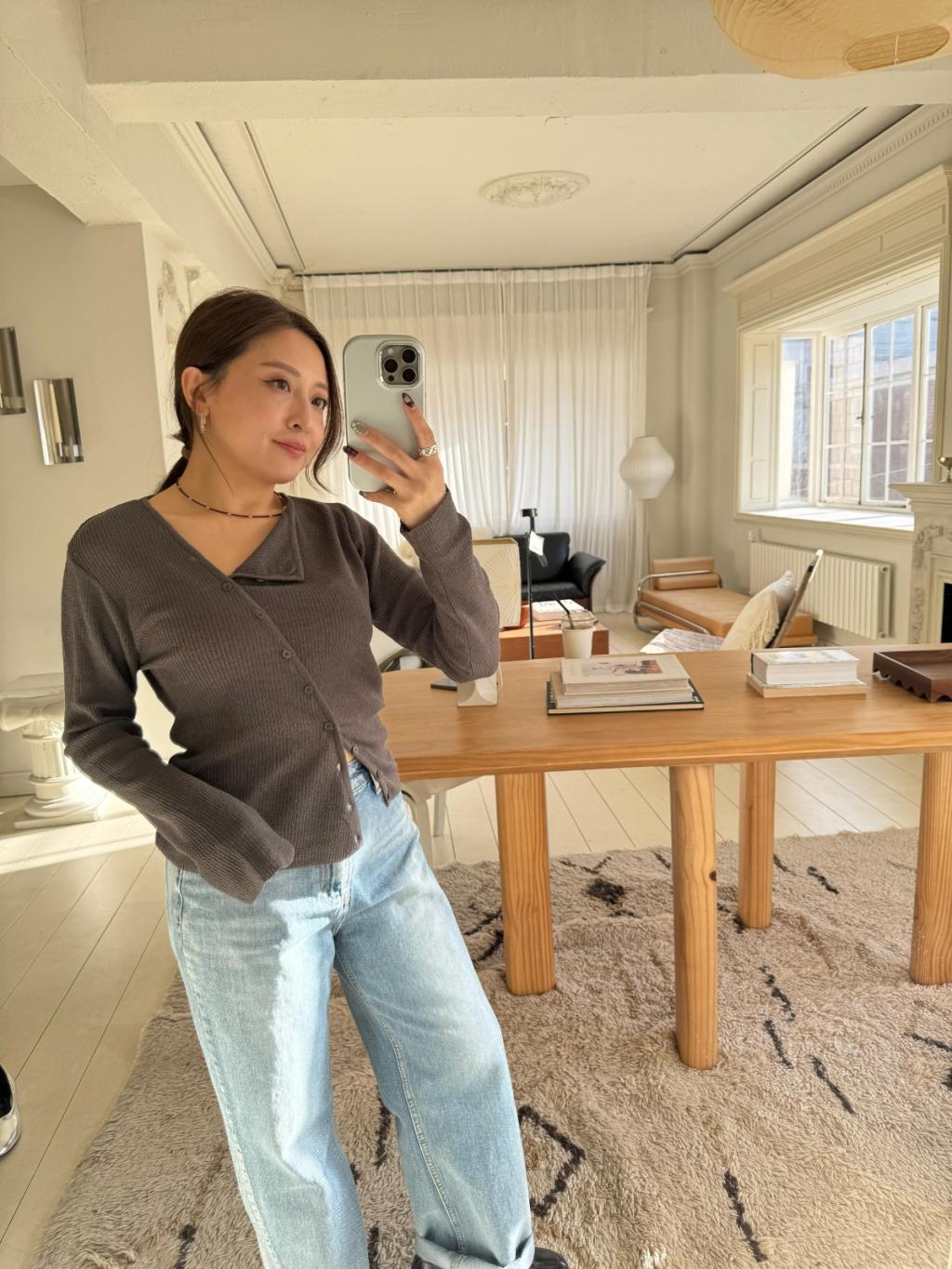 CD042 - v領顯白不規則針織外套