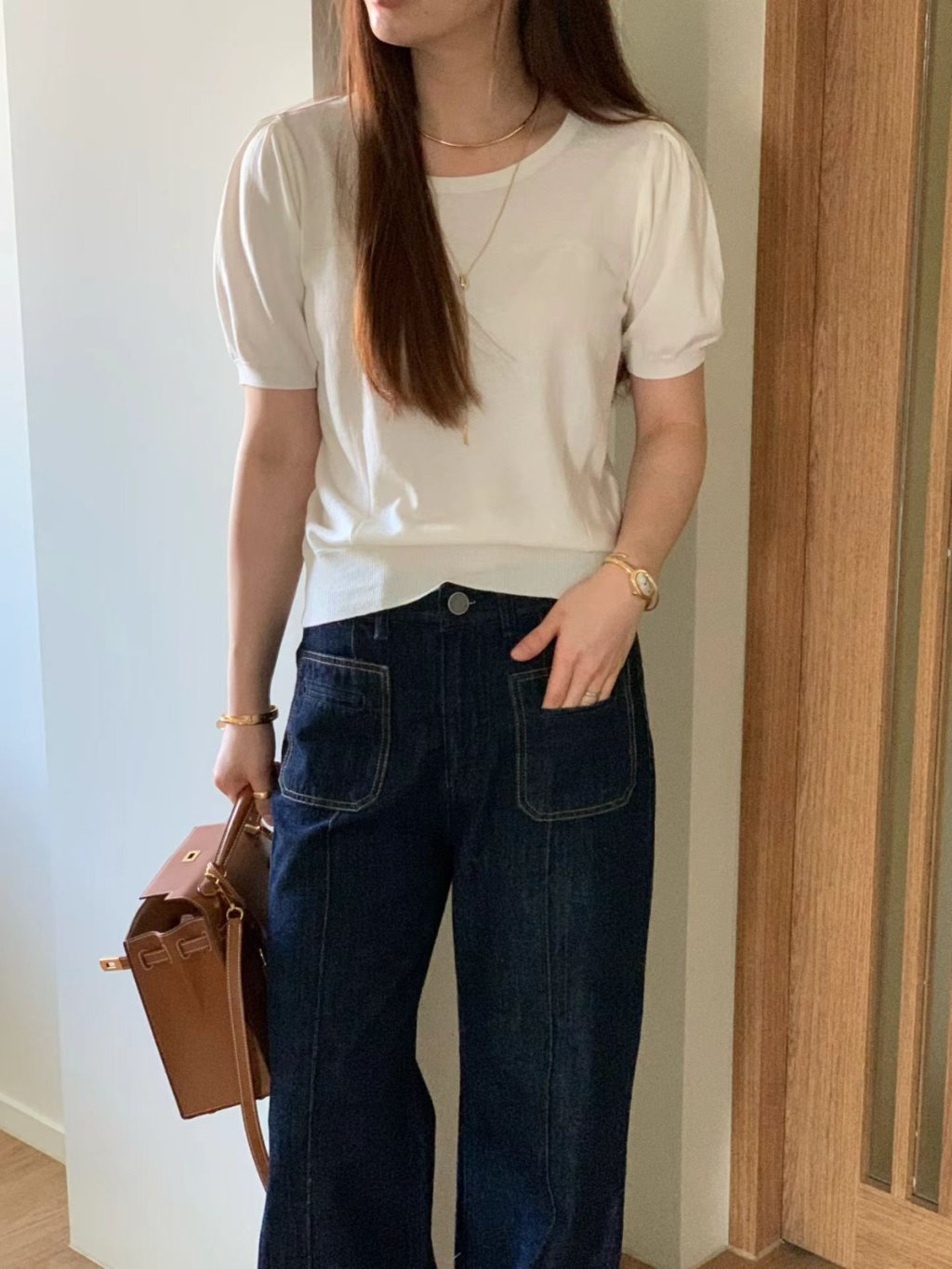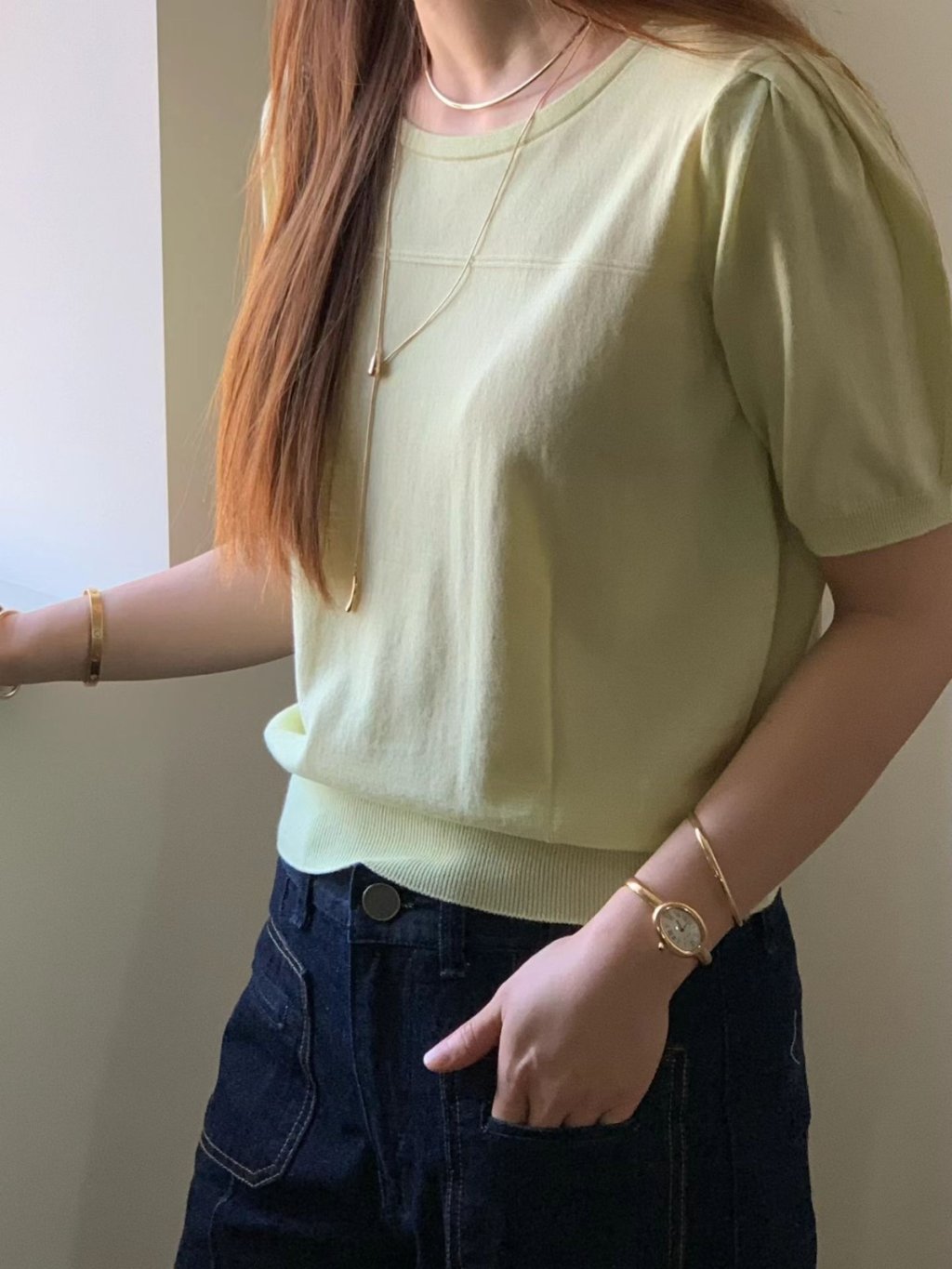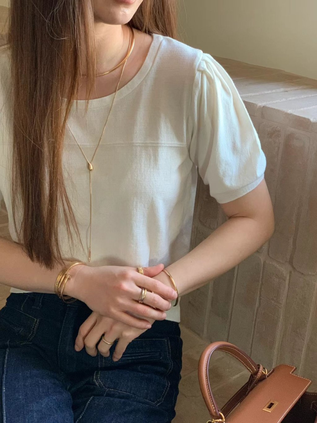 TP323 - 圓領微泡泡袖針織衫