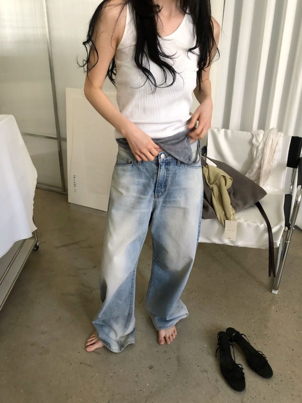 JN040 - 復古洗水3D 剪裁牛仔褲