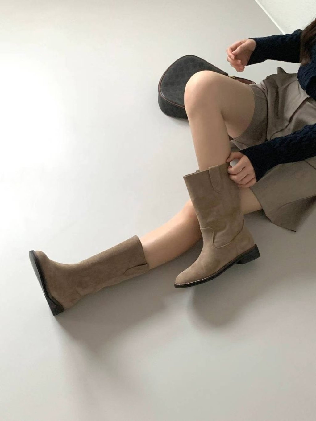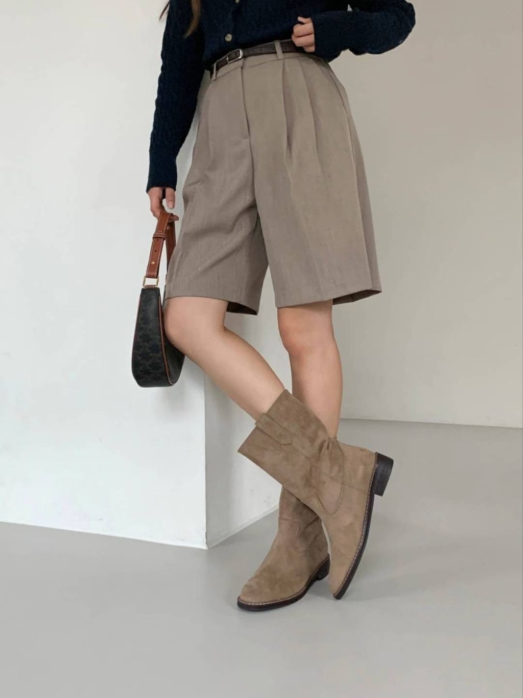 SH019 - 絨面復古中筒靴